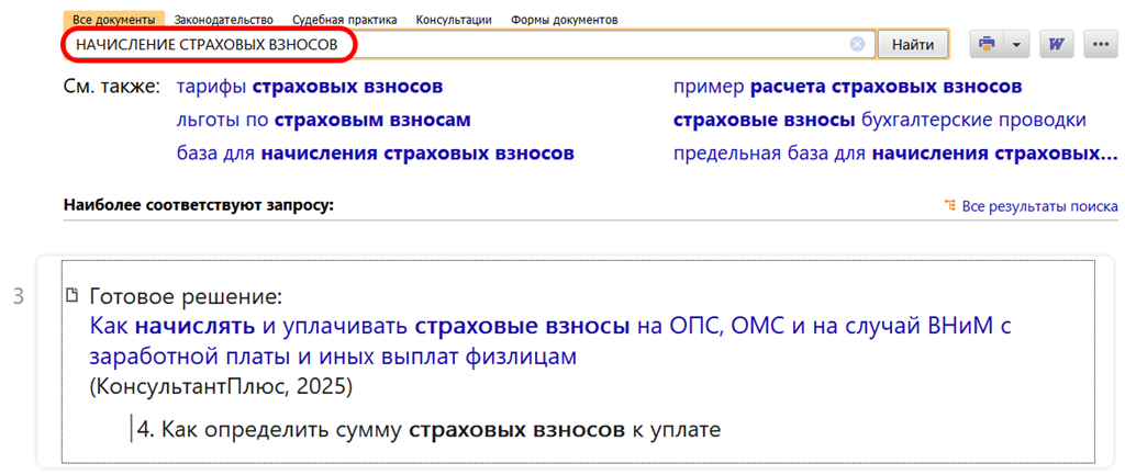 Особенности начисления и уплаты страховых взносов см. в Готовом решении: Как начислять и уплачивать страховые взносы на ОПС, ОМС и на случай ВНиМ с заработной платы и иных выплат физлицам (КонсультантПлюс, 2025)