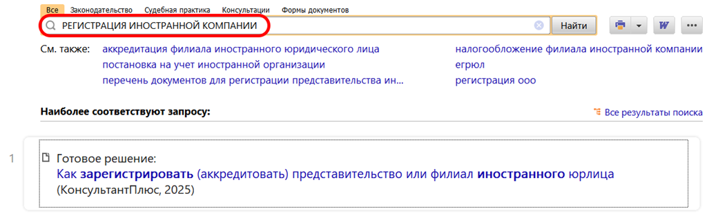 Рекомендуемый поиск в КонсультантПлюс