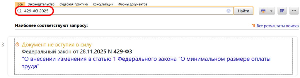 Рекомендуемый поиск в КонсультантПлюс