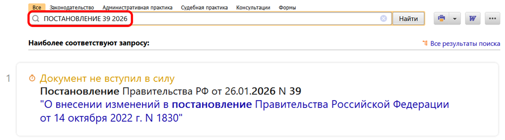 Обращаем внимание на Постановление Правительства РФ от 26.01.2026 № 39.