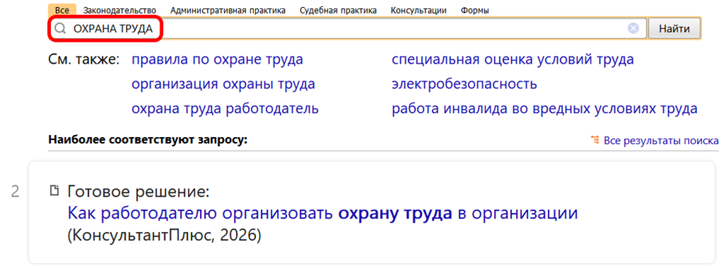 Рекомендуемый поиск в КонсультантПлюс